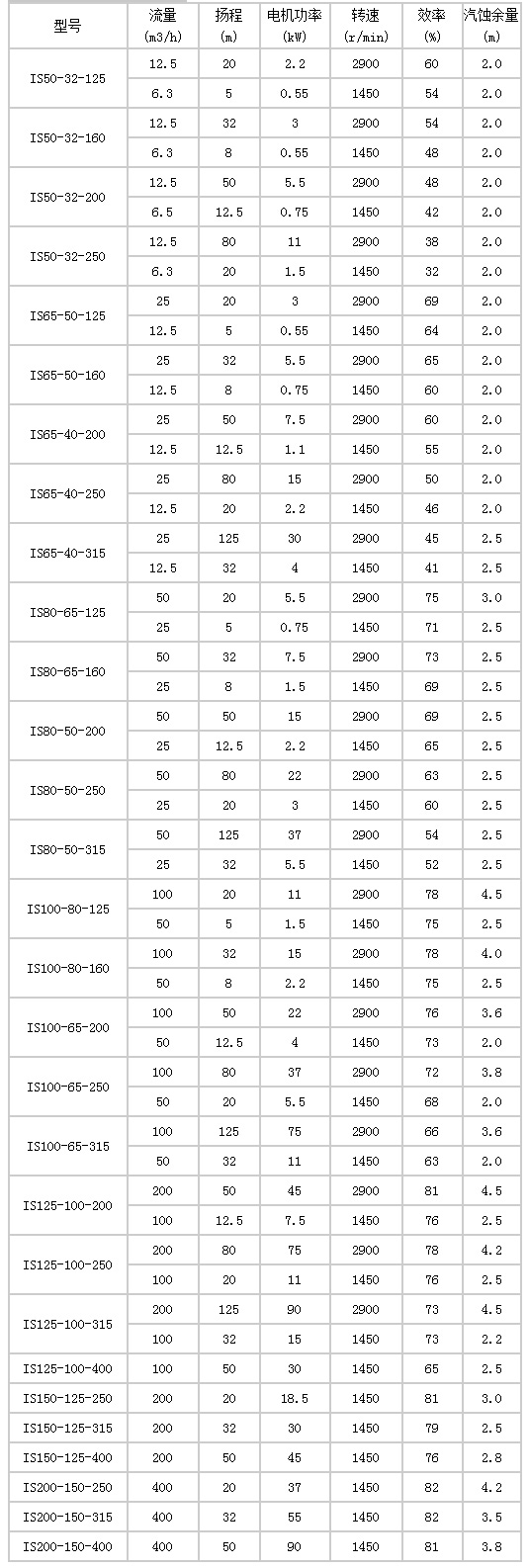 IS單級離心(xin)泵的性能參數(shu):