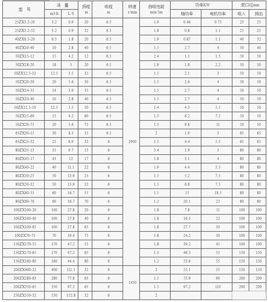 ZX系列(liè)自吸泵性能參數(shù):