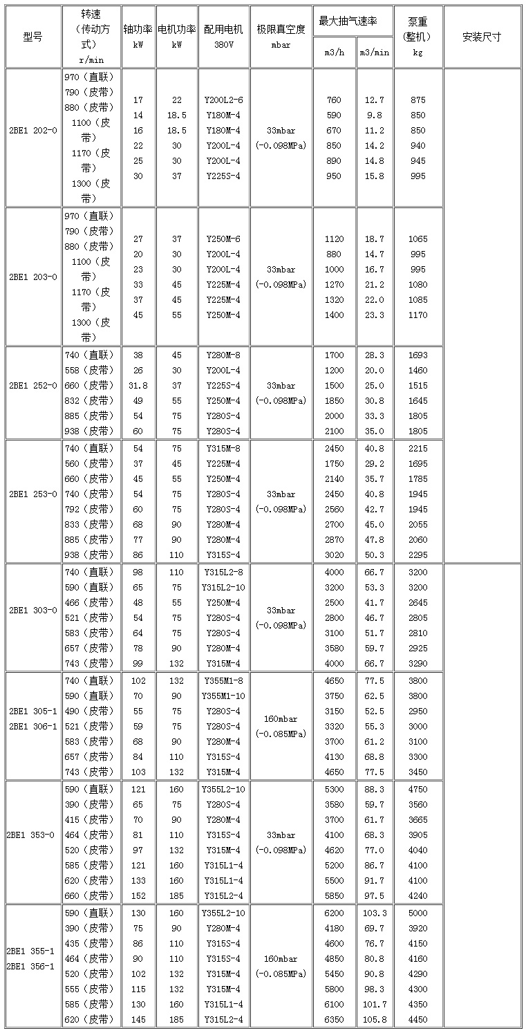 2BE系列(lie)水環式(shì)真空泵(bèng)技術參(cān)數: