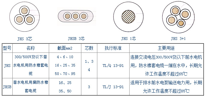 JHS防水(shui)電纜/JHSB防(fáng)水扁電(diàn)纜線為(wei)水下潛(qián)水泵用(yong)防水線(xian),本橡🔆套(tao)電‼️纜🔴線(xian)采用防(fáng)水外護(hù)套制成(cheng)。JHS型防水(shui)橡套電(dian)纜🈲供交(jiāo)流電壓(ya)500V及以下(xia)的潛水(shui)電機上(shàng)傳輸電(diàn)能用。在(zai)長✌️期浸(jin)水及較(jiao)大的水(shui)壓下,具(ju)有良好(hǎo)的電氣(qi)😄絕緣性(xìng)能。防水(shui)橡套電(diàn)纜彎曲(qu)性能良(liang)好,能承(chéng)受經常(cháng)的移動(dòng).